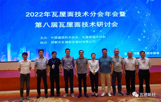 7月27日,由瓦德新材協(xié)辦,作為2022第三屆防水行業(yè)大會(huì)平行論壇的2022年第八屆瓦屋面技術(shù)與市場(chǎng)研討會(huì),在南京白金漢爵大酒店召開(kāi)。瓦德新材董事長(zhǎng)謝富強(qiáng)帶隊(duì)參加。