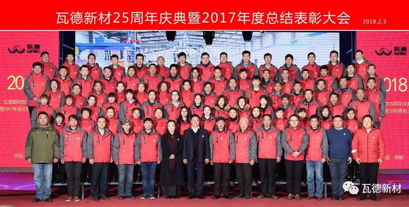 2月3日上午瓦德新材25周年慶典暨2017年度總結(jié)表彰大會(huì)于河北邯鄲五谷豐登大酒店隆重召開(kāi)。此次會(huì)議的主題為“感恩 共享 發(fā)展”。集團(tuán)董事長(zhǎng)謝富強(qiáng),總經(jīng)理常金秀,中高層領(lǐng)導(dǎo)干部,武漢工廠、邯鄲工廠、安徽工廠職工代表,社會(huì)各界友人等近300人歡聚一堂, 共同分享收獲的喜悅,迎接全新的挑戰(zhàn)。